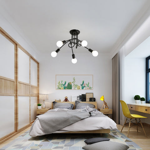 5-Licht-Industrie-Deckenleuchte aus Metall, ideale Beleuchtung, einfache Struktur, glatte Linien, schwarzer Kronleuchter, kann Ihr Wohnzimmer, Esszimmer, Küche, Schlafzimmer und mehr dekorieren und eine erstklassige und komfortable Atmosphäre schaffen.